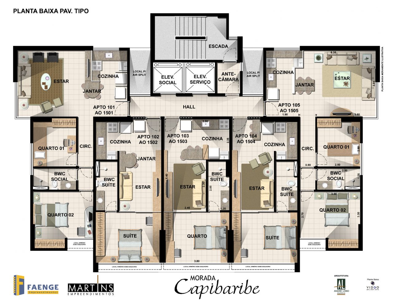 15 Pavimentos tipo com 5 apartamentos por andar